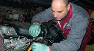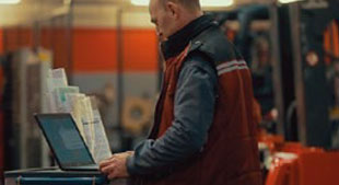 Linde verifica gli organi vitali del gruppo trasmissione avvalendosi di apparecchi diagnostici d'avanguardia. In questo modo è possibile garantire la piena potenza del motore, la sicurezza del funzionamento e la conformità alle norme di emissione applicabili, in particolare per i carrelli elevatori diesel.